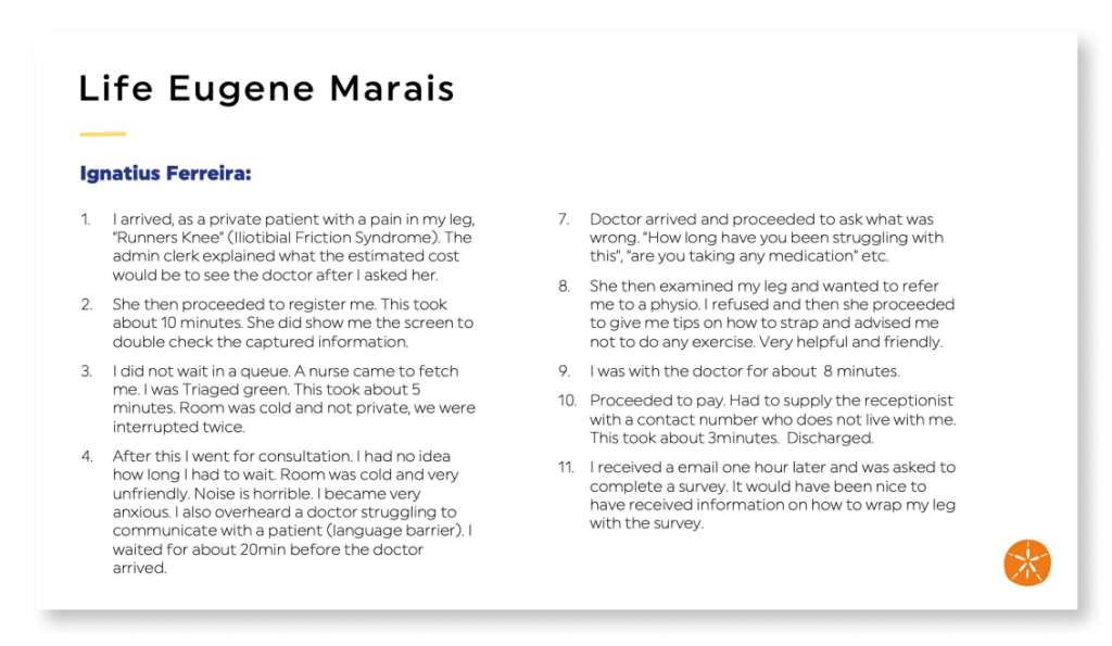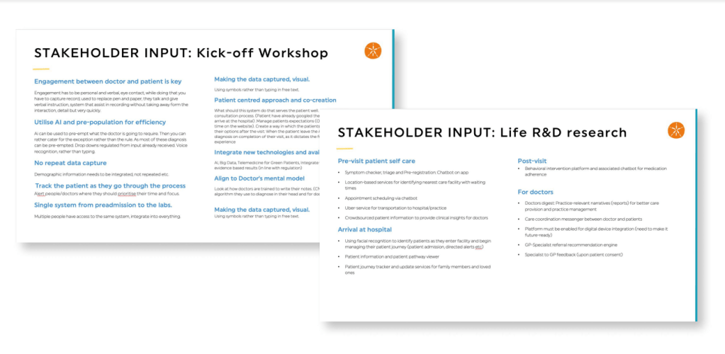 We began by facilitating workshops with key stakeholders, including doctors, hospital administrators, and IT professionals. The goal was to align Life Healthcare’s business objectives with the system’s functional requirements. Through collaborative activities, we mapped out the “ideal system,” identifying key pain points in the current system and the features that would be most important to different user groups.